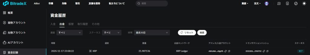「Ai Daily」を解除⇒「現物」資産に移動⇒出庫処理⇒ハードウェアウォレット⇒国内取引所へ出庫
